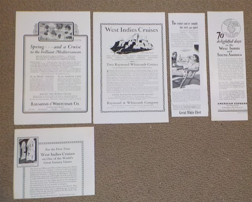 10) Lot of 5- 1920s/30s WEST INDIES, S. AMERICA Print Ads SS Columbus, Carinthia B1K Ad Size (Approximate Overall) 3 1/2" x 9" to 6 1/2" x 10"