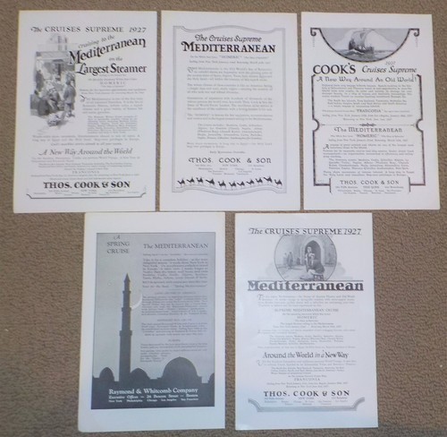 7) Lot of 5 - 1920s/30s MEDITERRANEAN Cruise Print Ads SS Homeric, SS Franconia B1M Ad Size (Approximate Overall) 7" x 10"