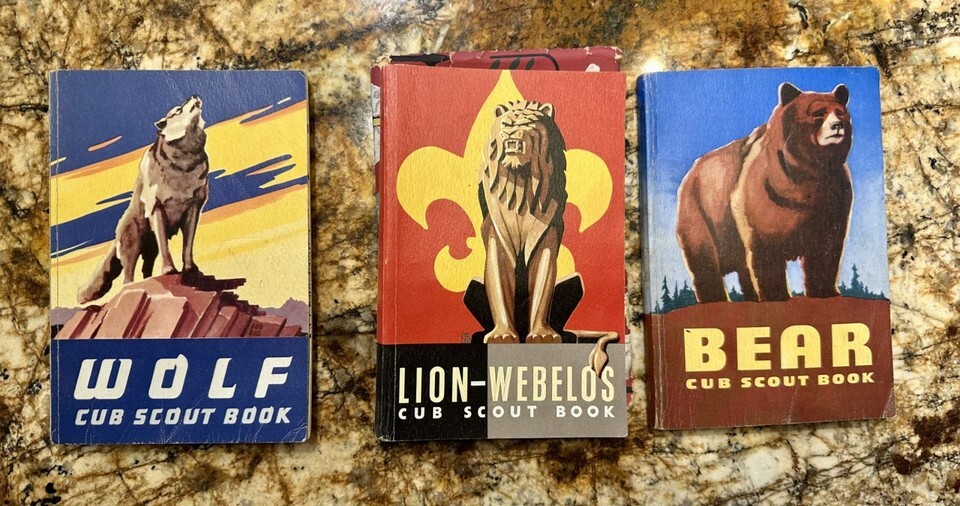 7. Wolf Cub Scout Book ? 1954 edition, howling wolf cover.