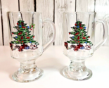Primary image for Luminarc Christmas Tree Holly Glass Mugs Set of 2 Vintage Holiday Hostess Gift