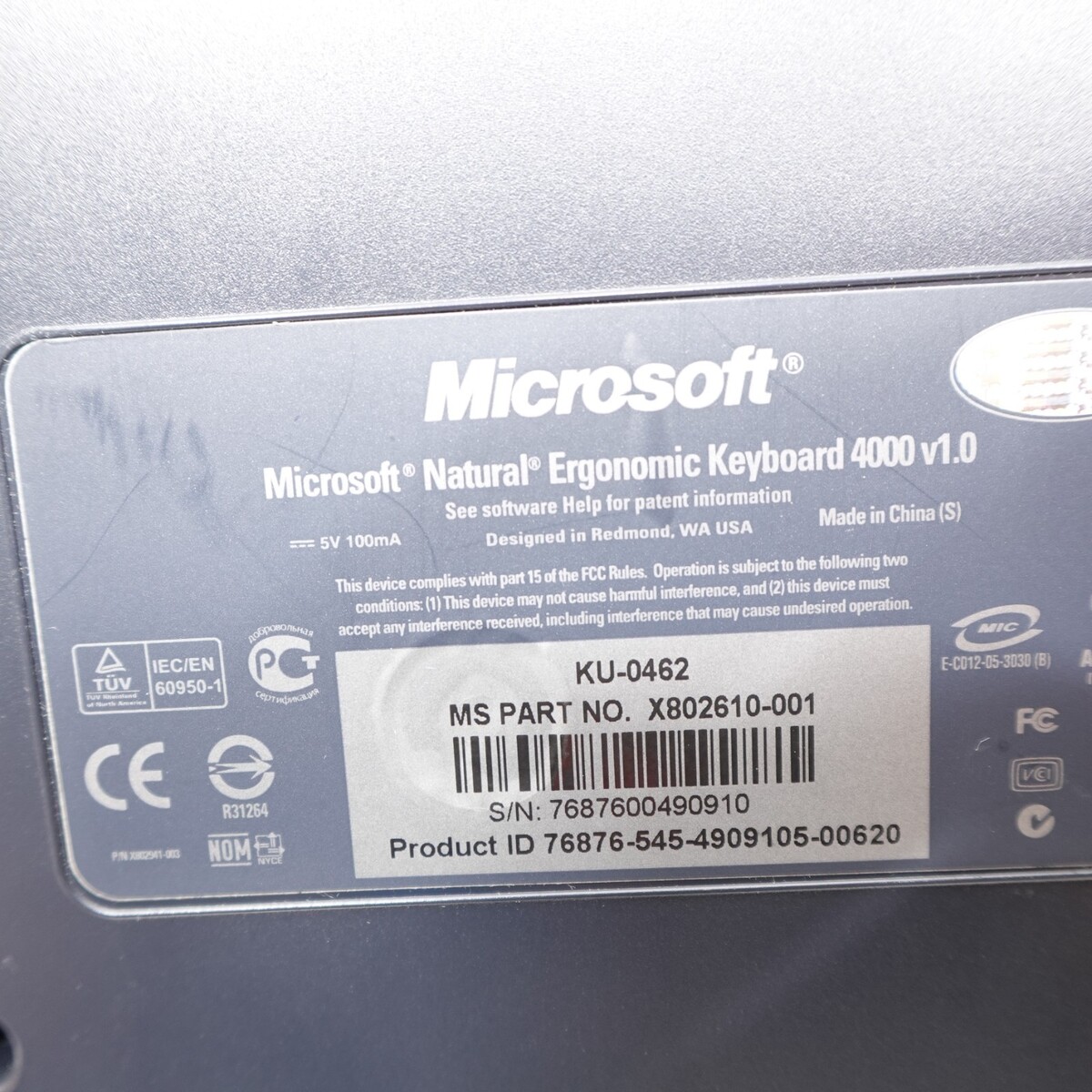 Primary image for MICROSOFT Natural Ergonomic Keyboard 4000 V1.0 KU-0462 + Palm Lift | Tested