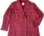 - MNG Woman Pink Tweed Double-Breasted Blazer Jacket Frayed Hem Size XL