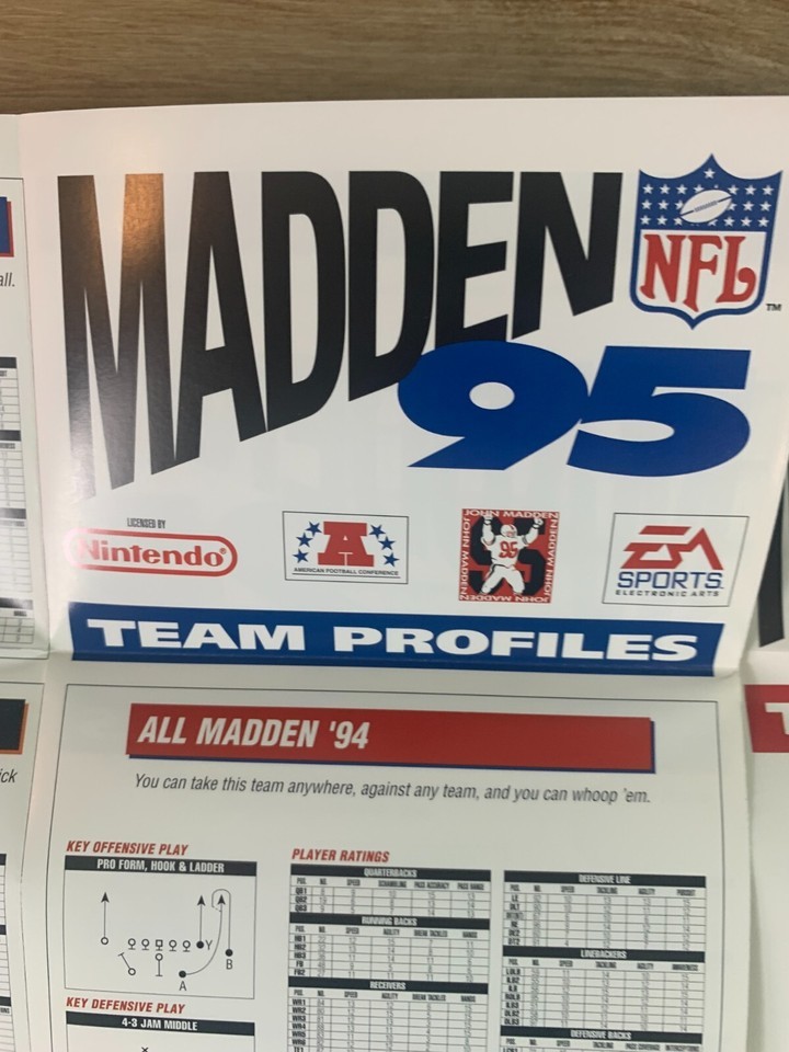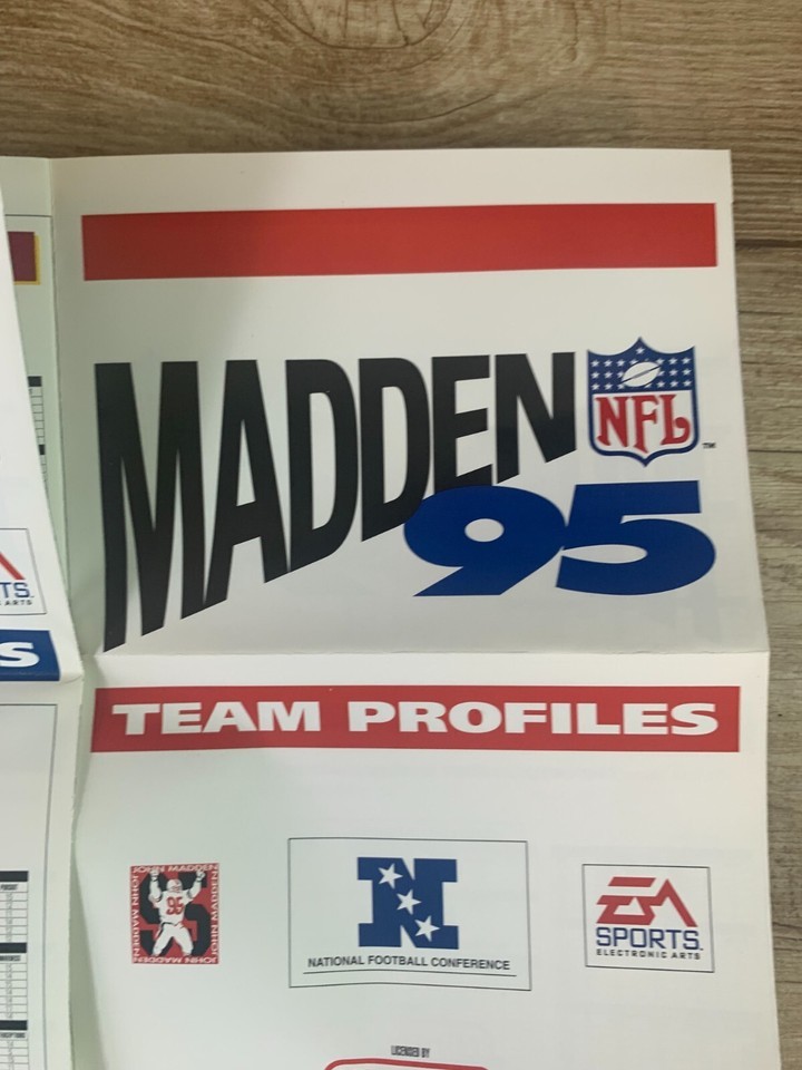- Madden 95 SNES Team Profile Inserts, Super Nintendo, AFC, NFC Rosters NFL