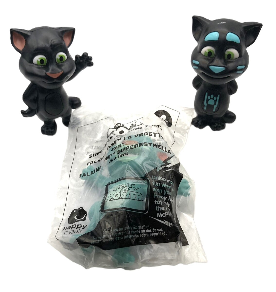 McDonald's Happy Meal Toys Talking Tom Cats 2016 Black and Green Lot of 3. One of the Tom's do not work and I can't test the one in the packaging still. The toys are in good, clean, pre-owned, condition. I do have more happy meal toys and other toys available and calculated shipping is applied to cart when you purchase multiple items.