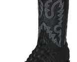 Mens Black Cowboy Boots Leather Crocodile Tail Print Western Wear Square Toe