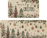 Merry Christmas Kitchen Mats Set of 2, Chritmas Tree Holly Ornament Winter Low-P