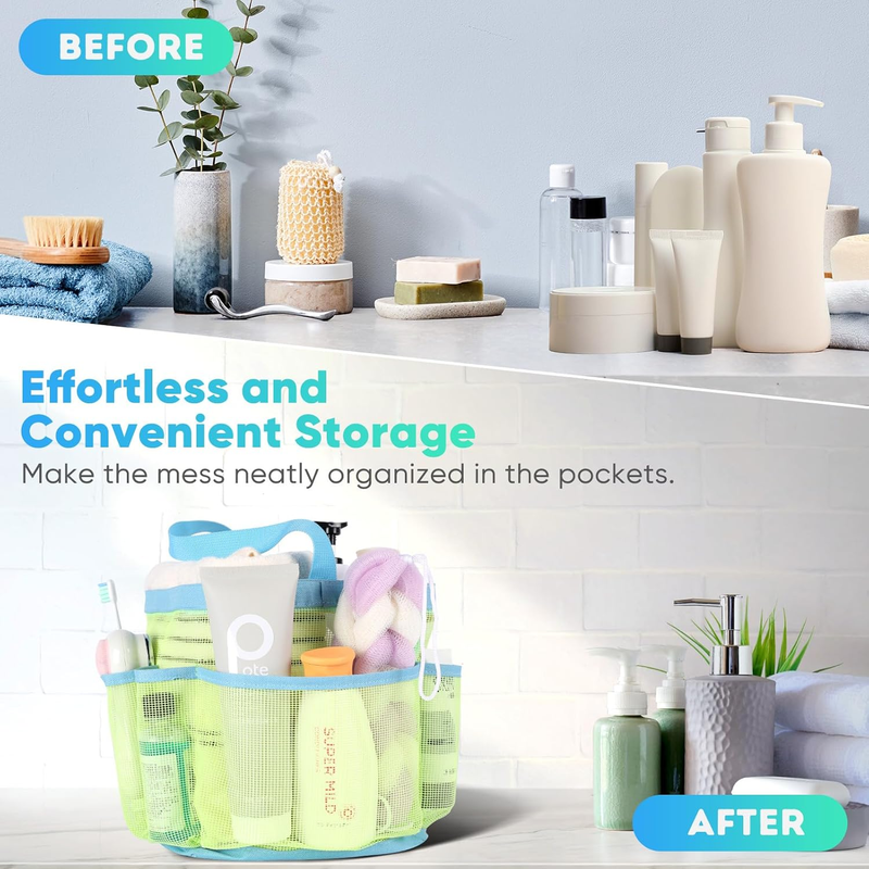 Mesh Shower Caddy Portable, 8-Pocket Large Capacity, Quick Dry, Easy Clean, Idea
