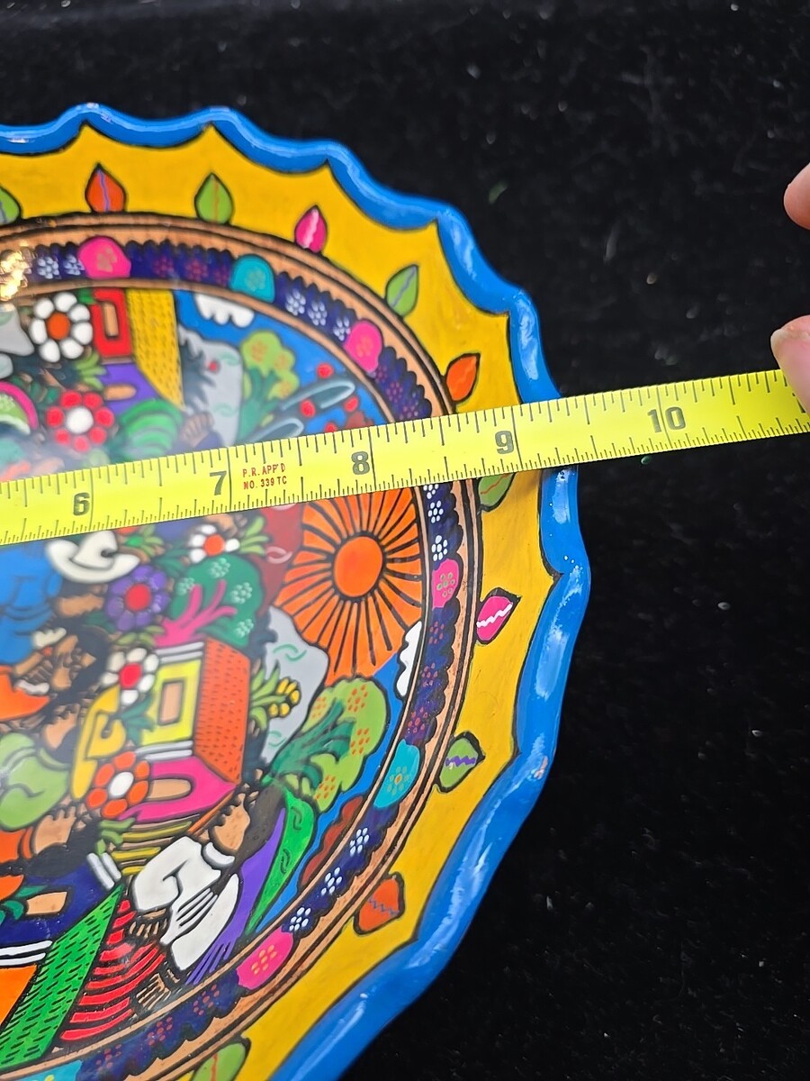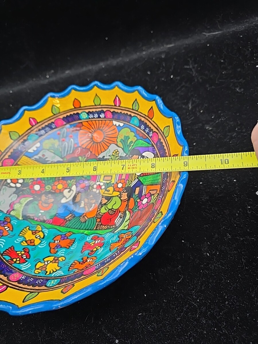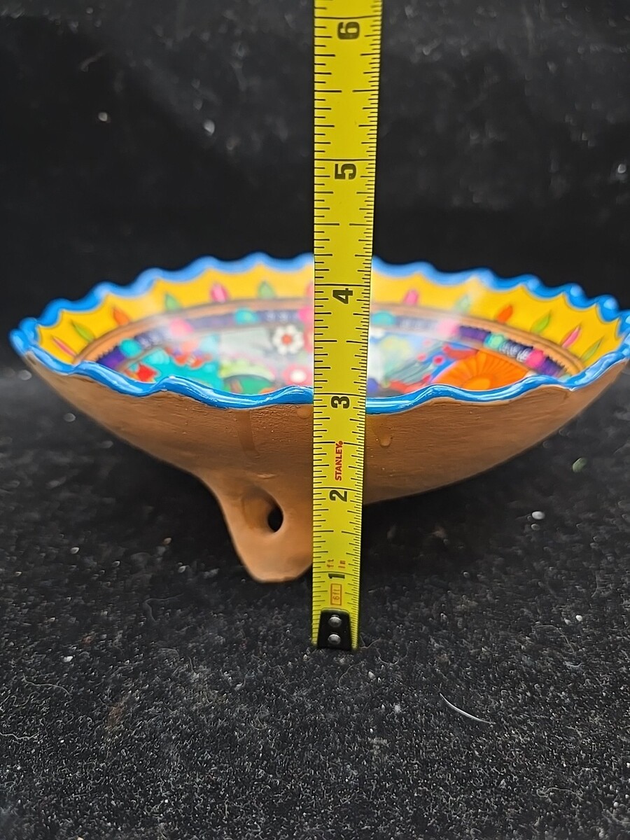 - Mexican Hanging Bowl Statement Pottery Painted All Over Village Pattern People