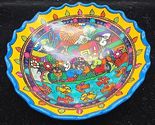 Mexican Hanging Bowl Statement Pottery Painted All Over Village Pattern People