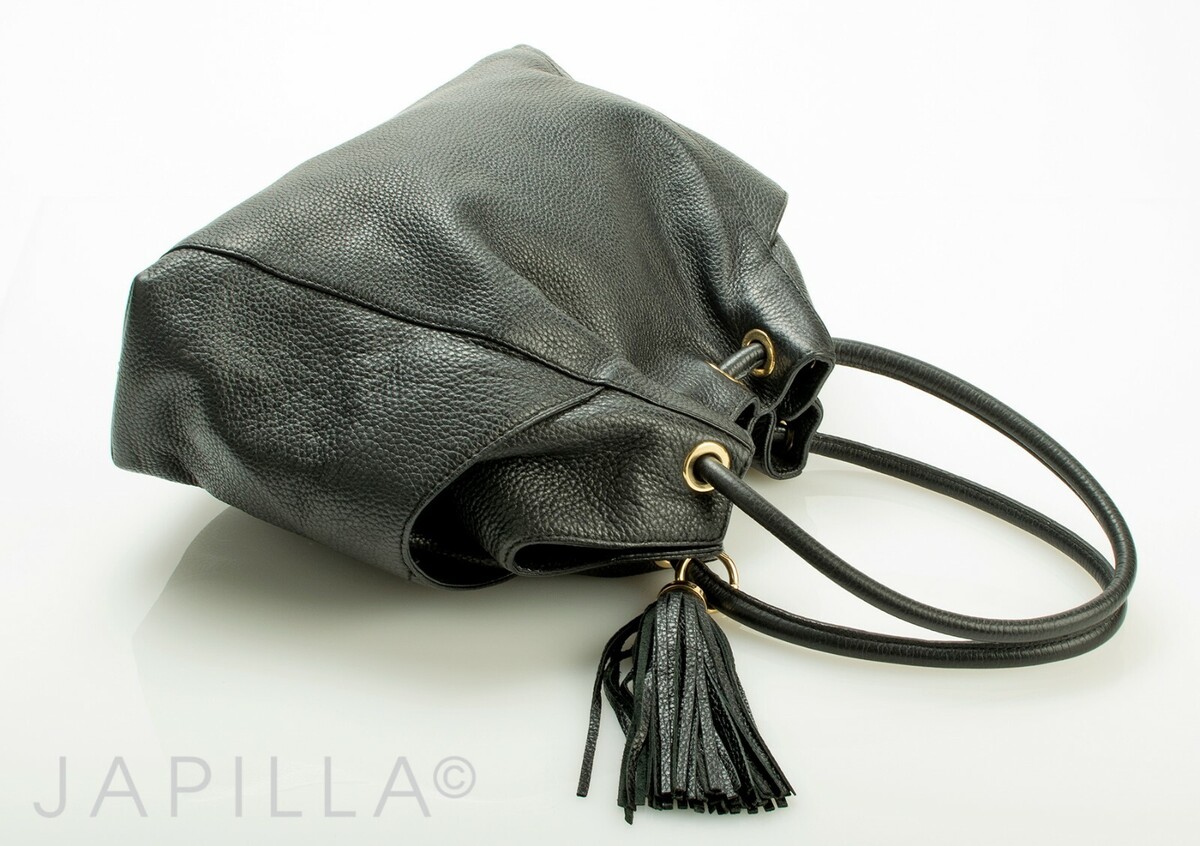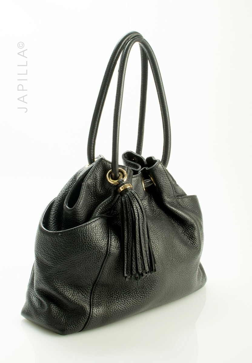 MICHAEL KORS BLACK LEATHER TASSELSATCHEL