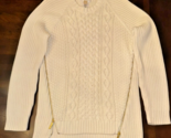 - Michael Kors XL Cream Cable Knit Sweater Gold Zip Side Pullover Cotton Blend