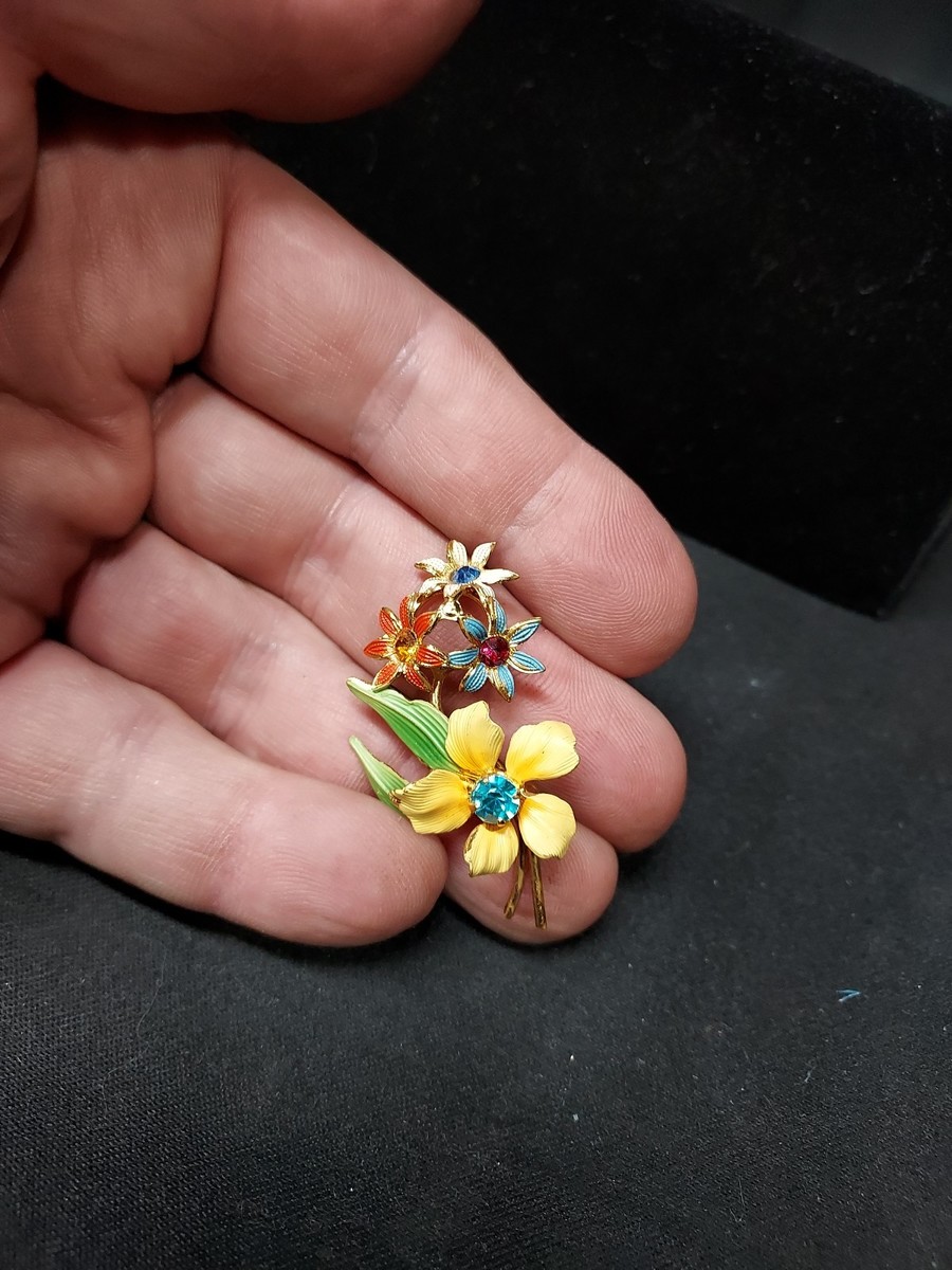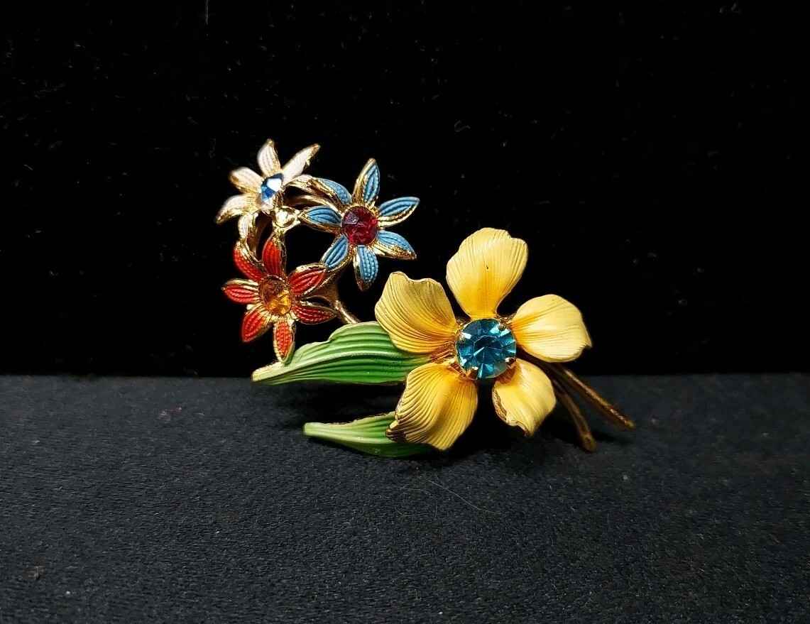 Mid Century 1950s Sparkling Crystals Flowers Bouquet Brooch Pin Made In Austria . Condition is Pre-owned - Good. Shipped with USPS Ground Advantage.