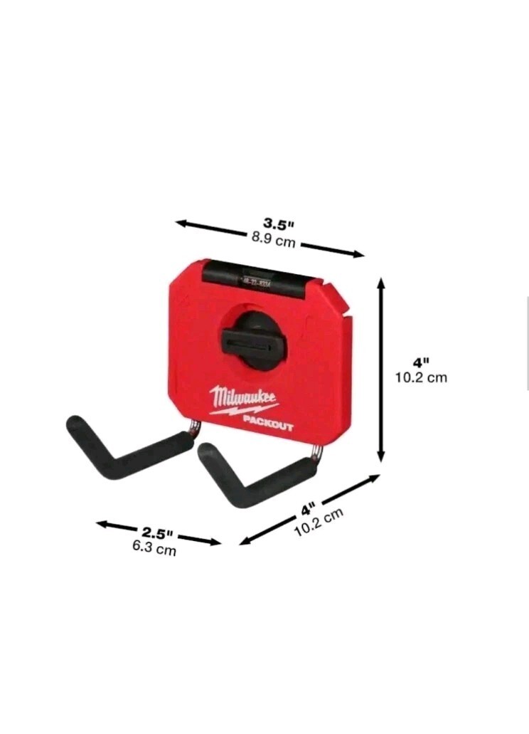 PACK OF 2 The Milwaukee Packout shop storage 4 in. straight hook delivers the most secure mounting when paired with Packout Wall Plates, strongly holding the Packout solution mounted to the wall. This hook is constructed with metal reinforcement to maintain shape when loaded and is optimized to store power tools, hand tools and more. To keep your tools securely in place and protected, our hook features protective rubber grips. Additionally, hook features connectivity with Packout solutions allowing you to fully customize your shop, Milwaukee Packout is the industry's most versatile and durable modular storage system. This Milwaukee Packout 4 in. Straight Hook is perfect for garage, sheds, or workshop organization and storage. Prevents slipping or bouncing off the hook, minimizing the risk of damage Made with high quality material Long lasting Easy accessible and frees up valuable work space