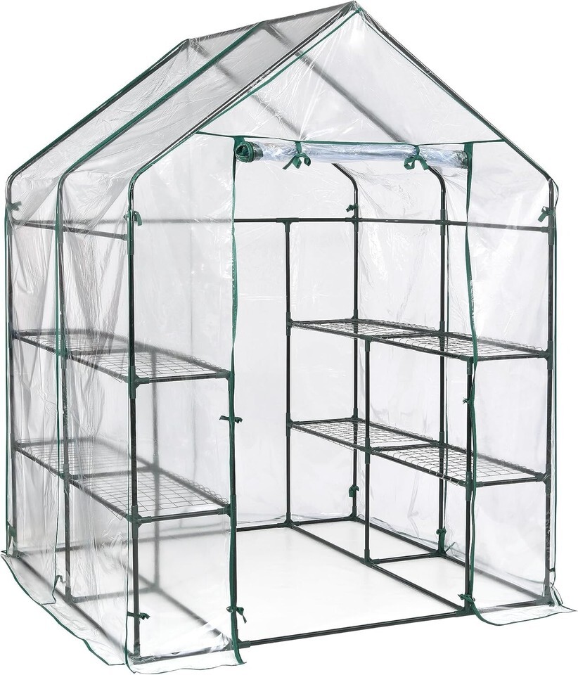 - Mini Greenhouse, Steel Frame, 4-Mesh Shelves, Clear Cover, Miracle-Gro 70527