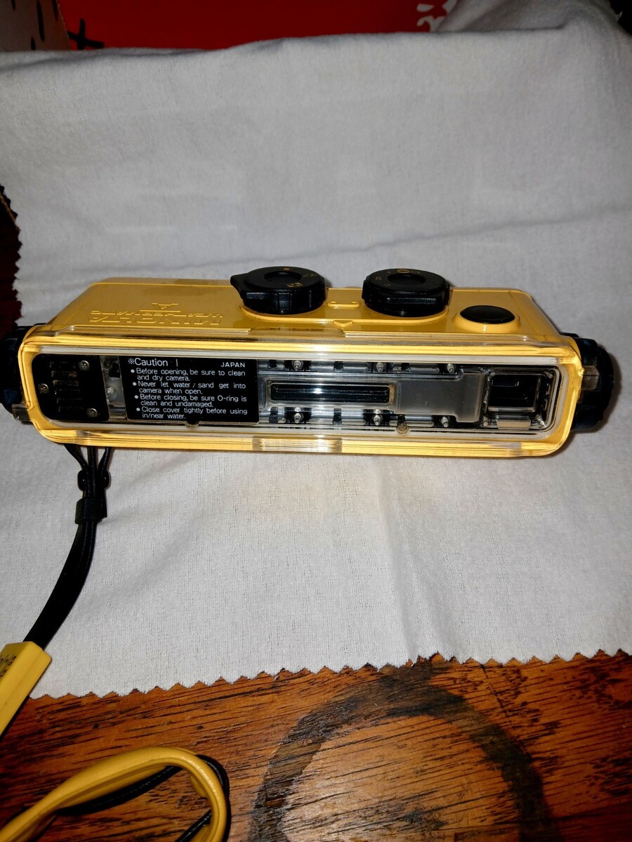 - Minolta Weathermatic A 110 Film Yellow Underwater Camera W/ Strap