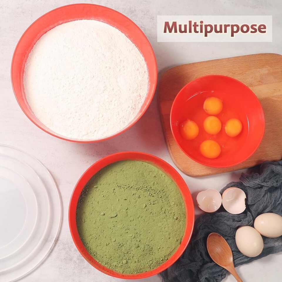 ?? ?Compact Storage?Our beautiful mixing bowls set nests for easy storage and convenience, this will save more kitchen space.Also, their flat lids make them stackable, adding a touch of sophistication to your kitchen.
