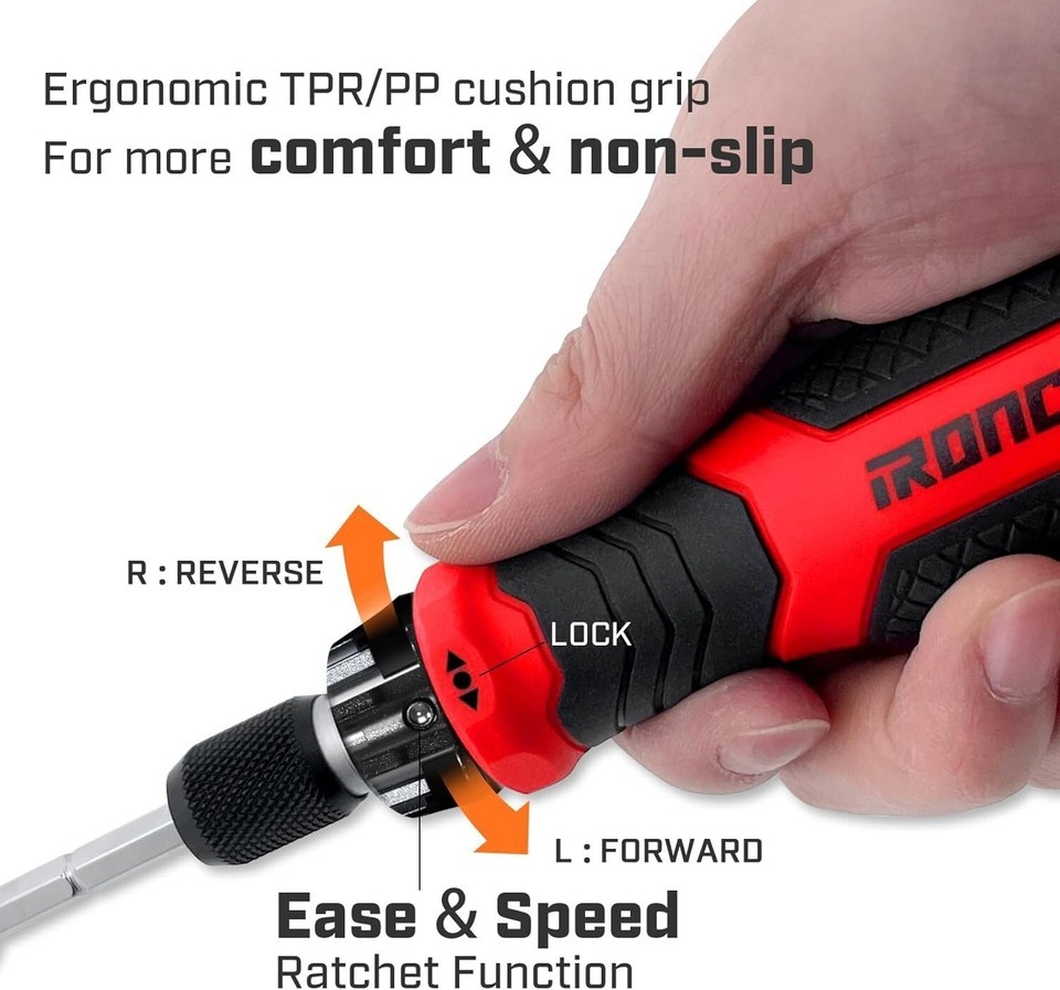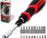 About this item EFFICIENCY MEETS VERSATILITY - Featuring a ratchet function for enhanced efficiency and including the 20 most commonly used bits (Phillips, Torx, Flathead, Hex, Square), all magnetic for easy screw grip and convenient handling. It ensures you're well-equipped for every task, making every project smoother and more manageable. SAFE AND SUSTAINABLE - Crafted with an eco-friendly TPR+PP handle, our screwdriver offers a safer grip with its anti-slip design. Ergonomically shaped for comfort, it ensures a fatigue-free experience even after prolonged use, blending sustainability with convenience for all your tasks. ADJUSTABLE BAR FOR EXTENDED REACH - Our screwdriver bit holder includes a adjustable bar for precise access to hard-to-reach screws. Ideal for intricate electronics and appliances, it broadens repair capabilities and simplifies maintenance, all in one adaptable tool. PORTABLE SPACE-SAVING INTERCHANGEABILITY - Multi-purpose screwdriver, compact, versatile, and efficient. With its portable design and interchangeable heads, it saves space in your toolbox while adapting effortlessly to any screw type. Perfect for on-the-go fixes and DIY projects.