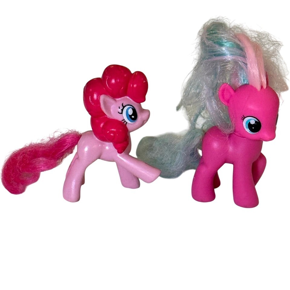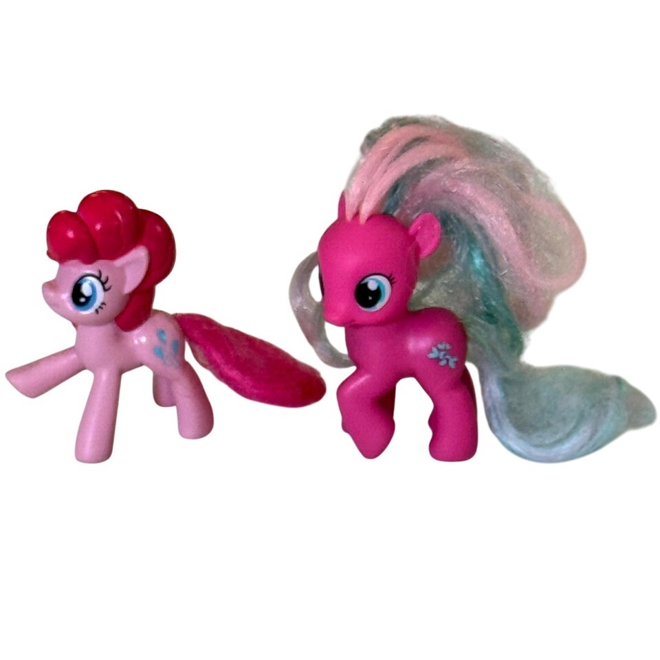 A delightful duo of My Little Pony: Friendship Is Magic mini Pinkie Pie figures from two distinct releases ? a 2011 Hasbro G4 brushable and a 2016 McDonald's Happy Meal edition. The 2011 Hasbro figure features rooted pastel hair in pink and teal with a sparkling balloon cutie mark, while the 2016 McDonald's version showcases a solid sculpted mane and a bright, animated pose. Each measures about 2oe? tall. Light cosmetic wear and typical play frizz, clean overall ? perfect for collectors or nostalgic fans of the Mane 6. ? Characters: Pinkie Pie ? Brand: Hasbro / McDonald's ? Years: 2011 2016 ? Size: Approx. 2oe??2?? tall ? Product Line: Friendship Is Magic (G4)
