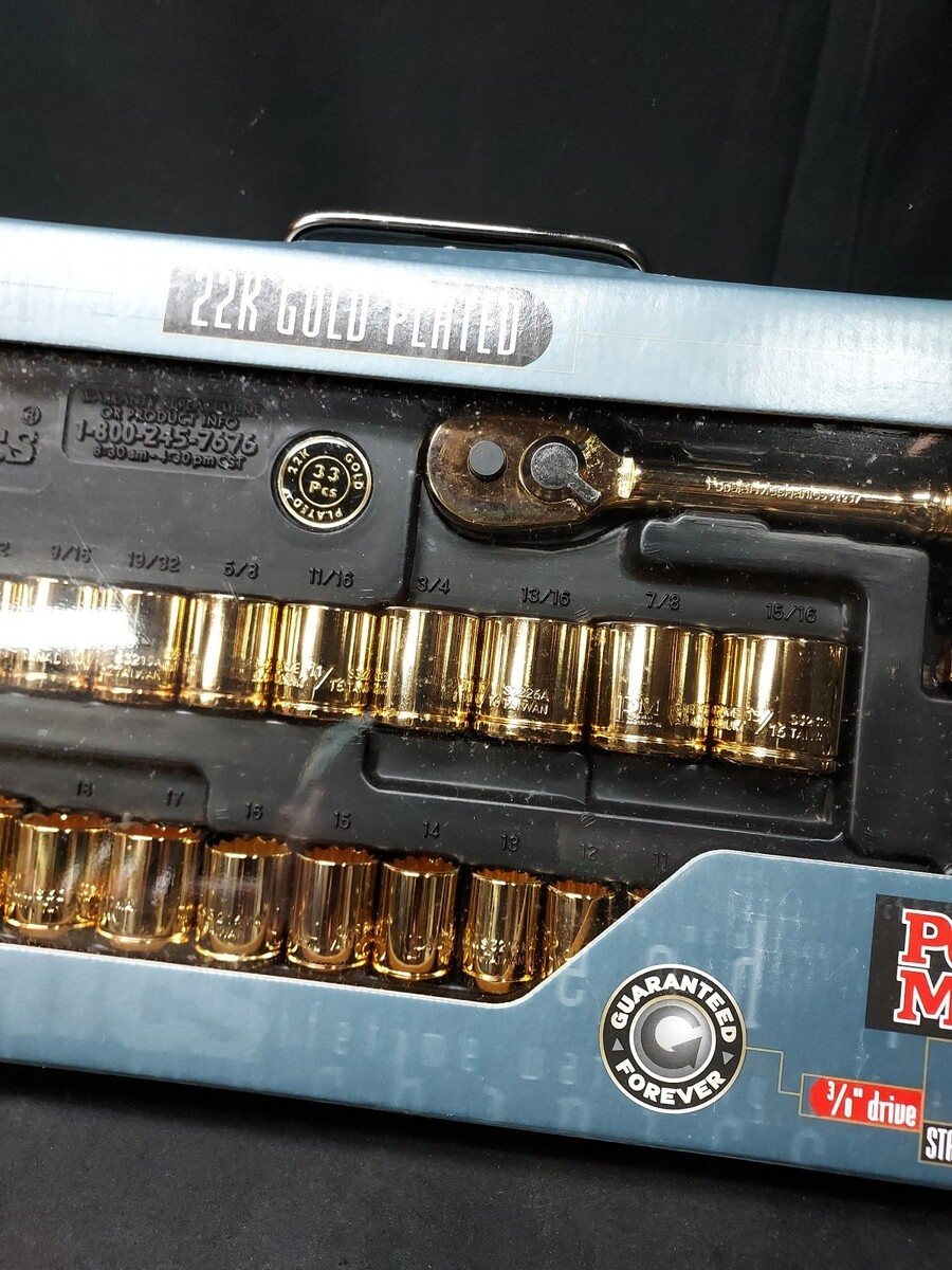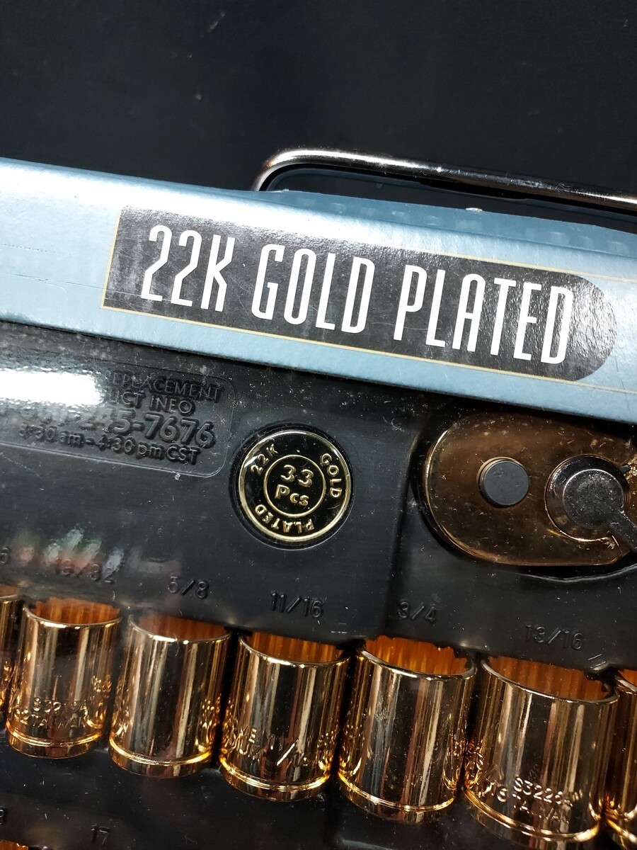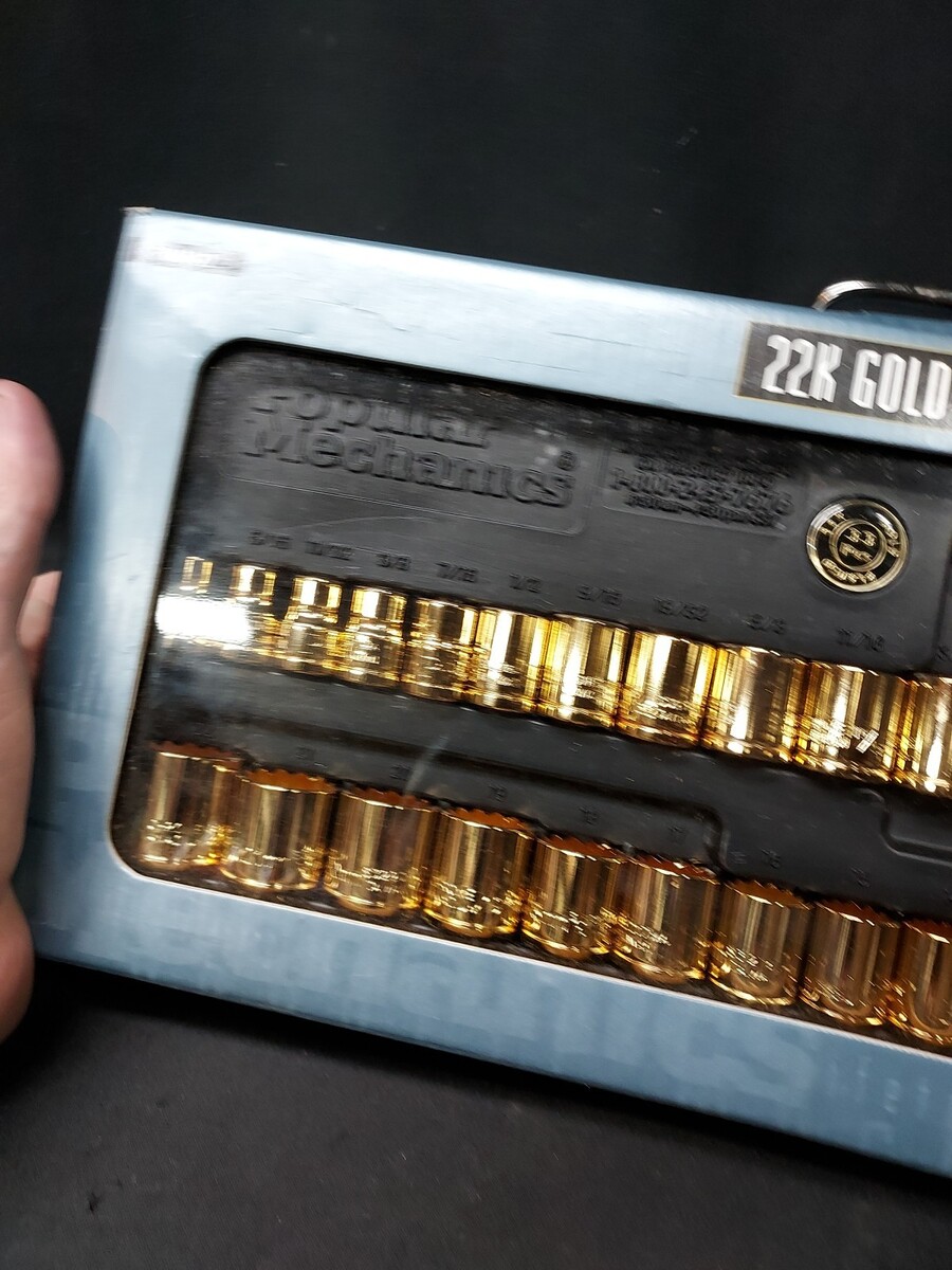 - NEW Popular Mechanics 22k Gold Plated Socket Set 33pc Standard And Metric 3/8