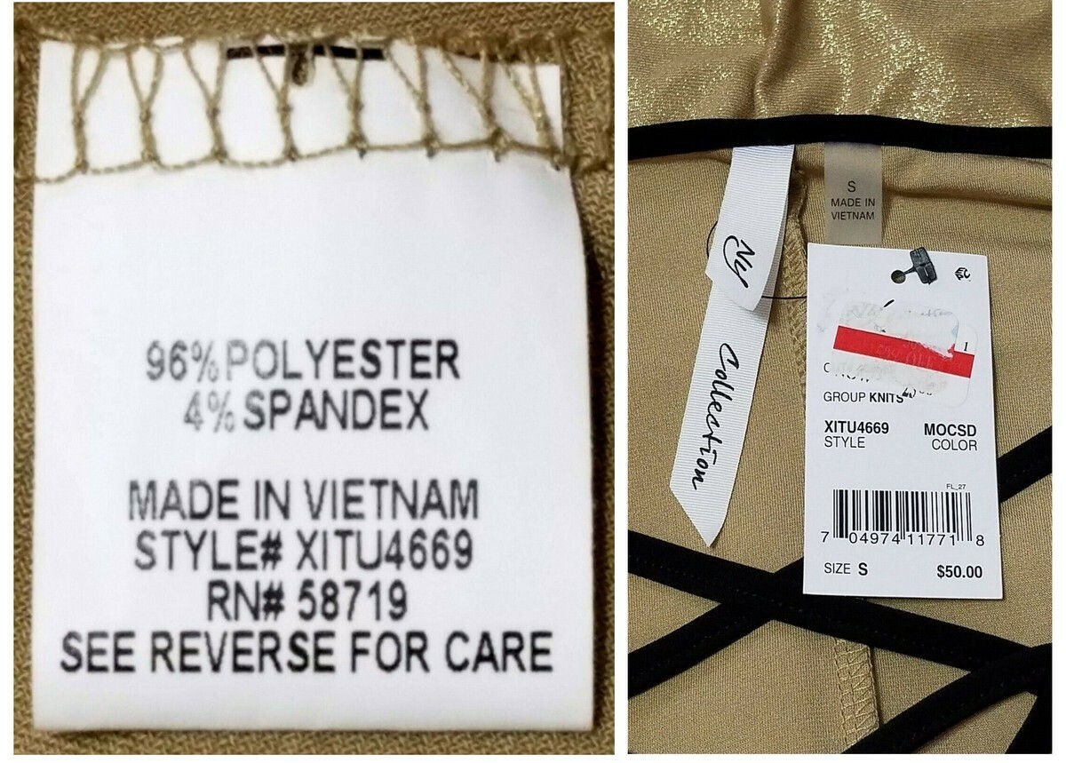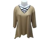 NY Collection Asymmetrical Mocha Gold Glittery Lace-Up 3/4 Sleeve Blouse(Small)