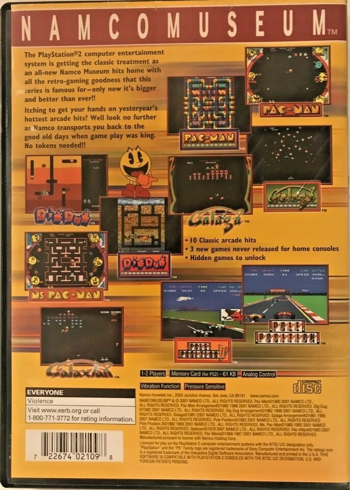 - Namco Museum (Sony PlayStation 2, 2001): CASE AND MANUAL: PS2: Game Collection