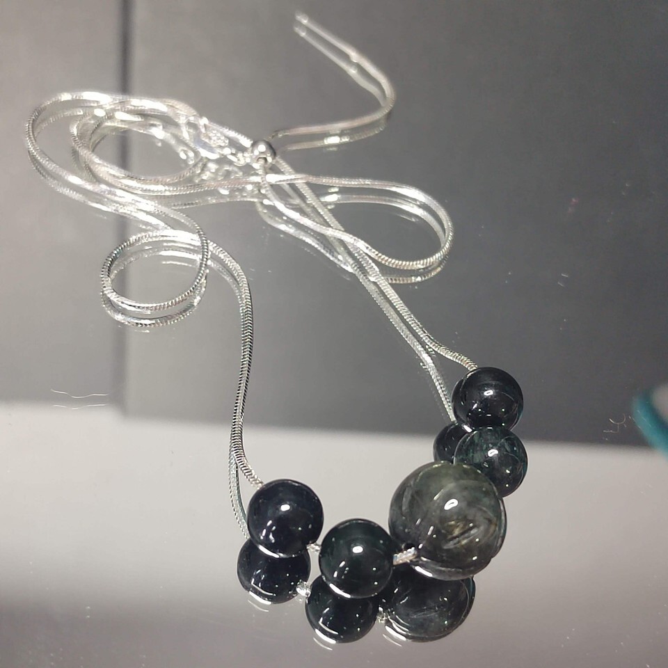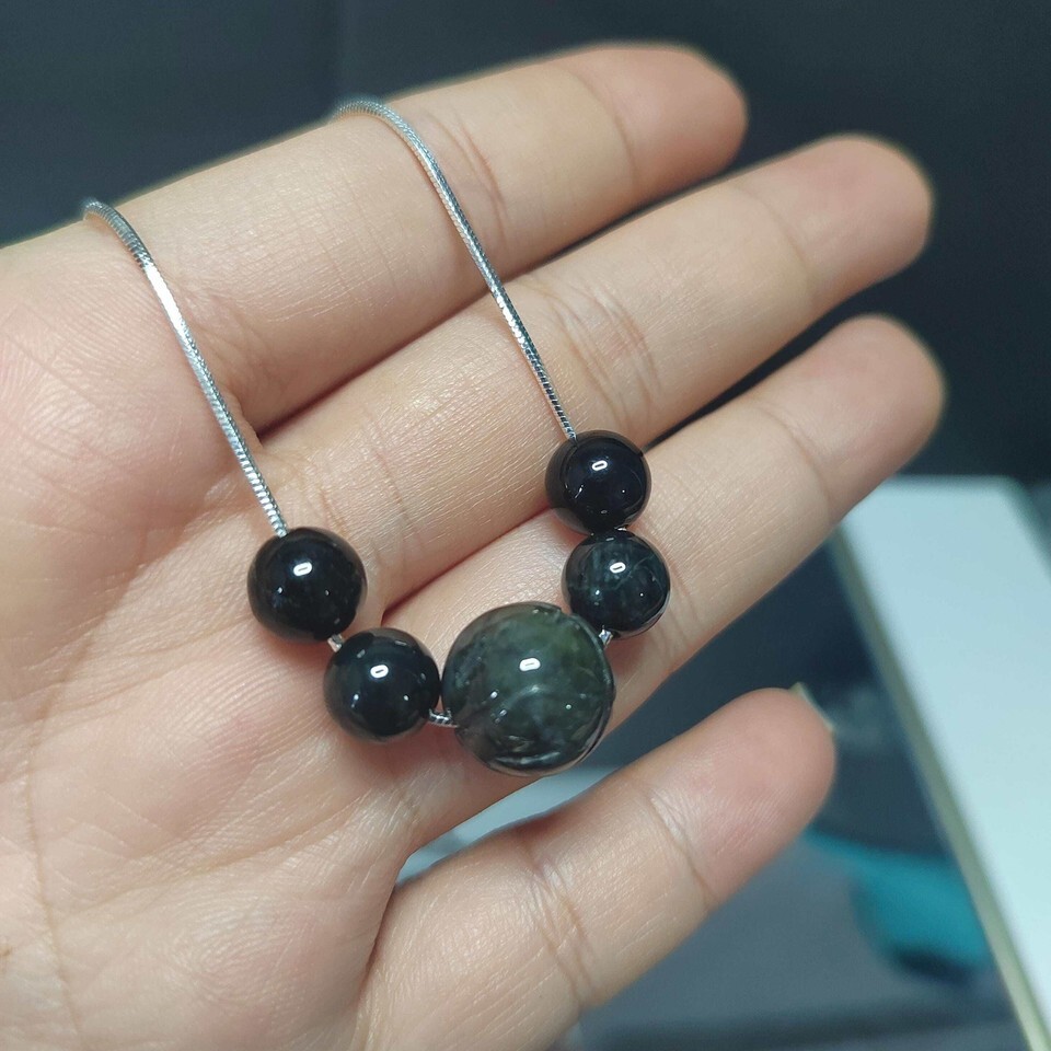 - Natural Black Ink Wuji Jadeite Necklace | S9999 Silver Vermeil Necklace SL332