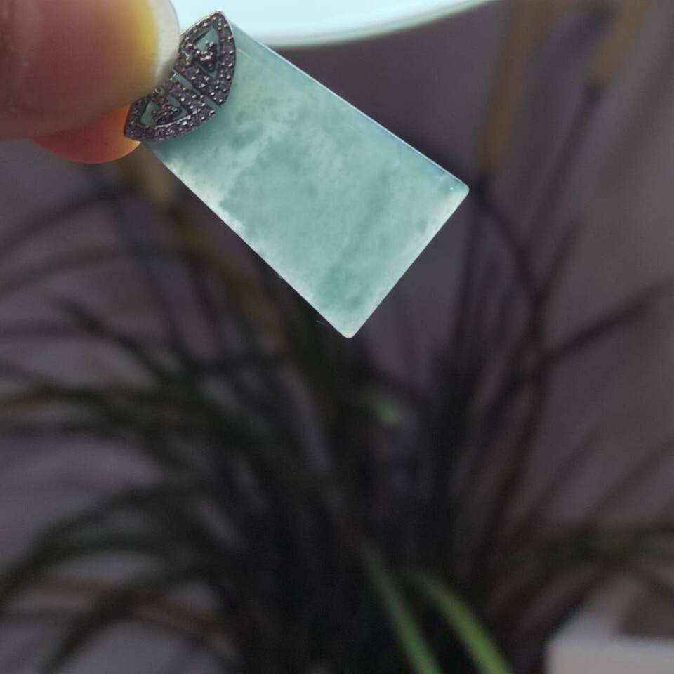 - Natural Guatemala Icy White Green Blue Sky Trapezoid Jadeite Pendant SL041