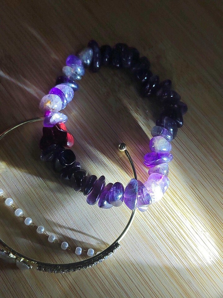 Natural Purple Amethyst Quartz Bracelet Set