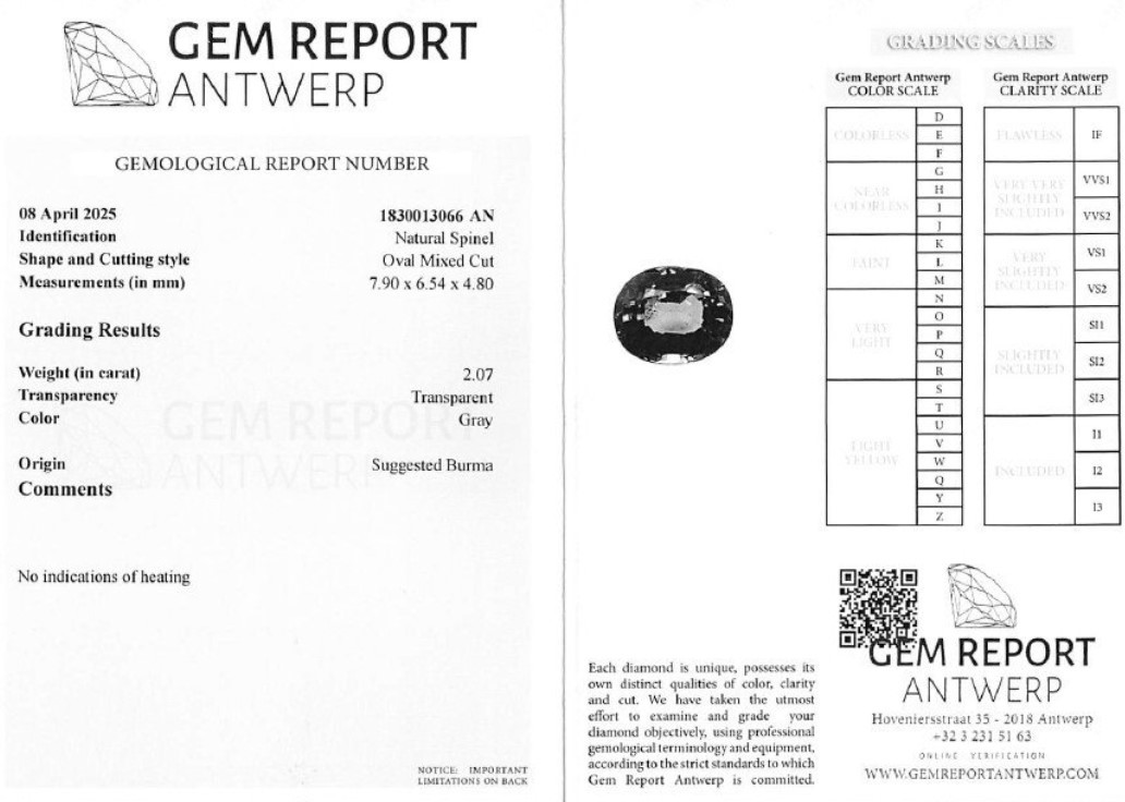 - Natural Spinel – 2.07 ct – Gray (Burma) – GRA Certified – Investment Gem