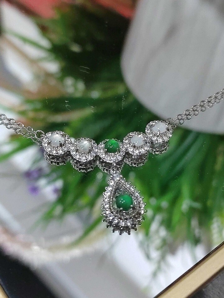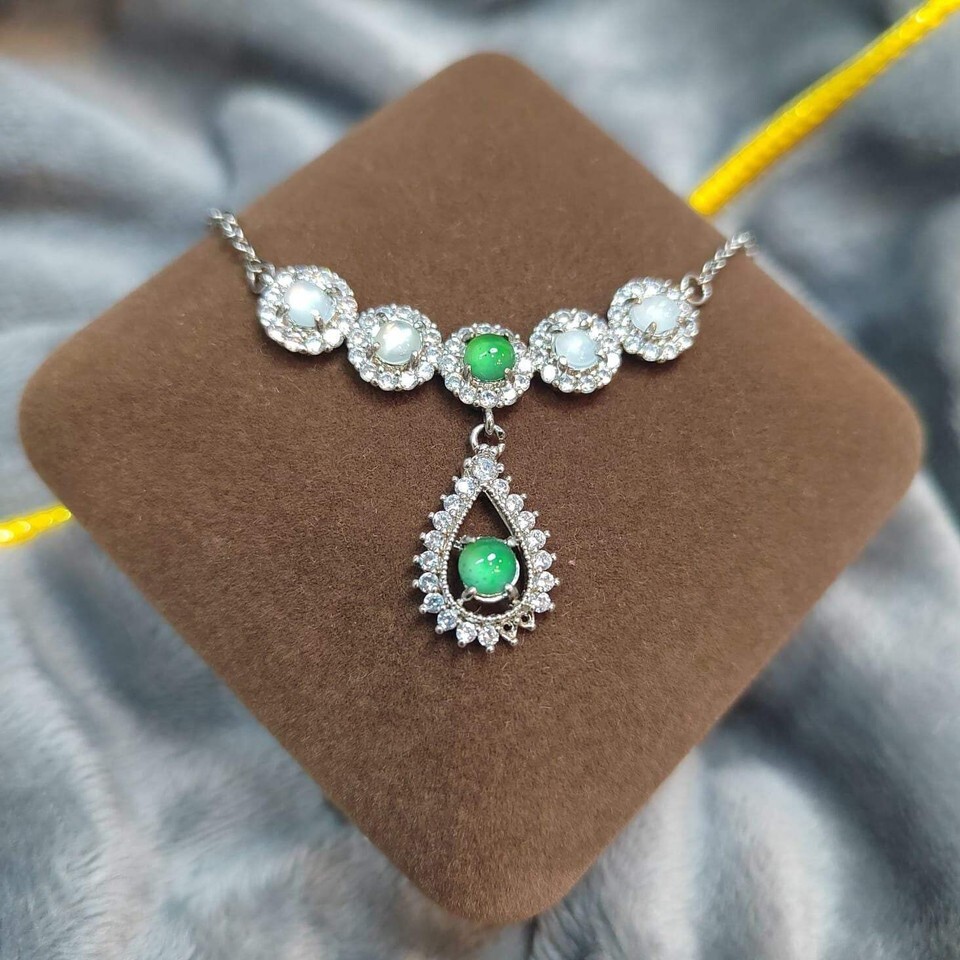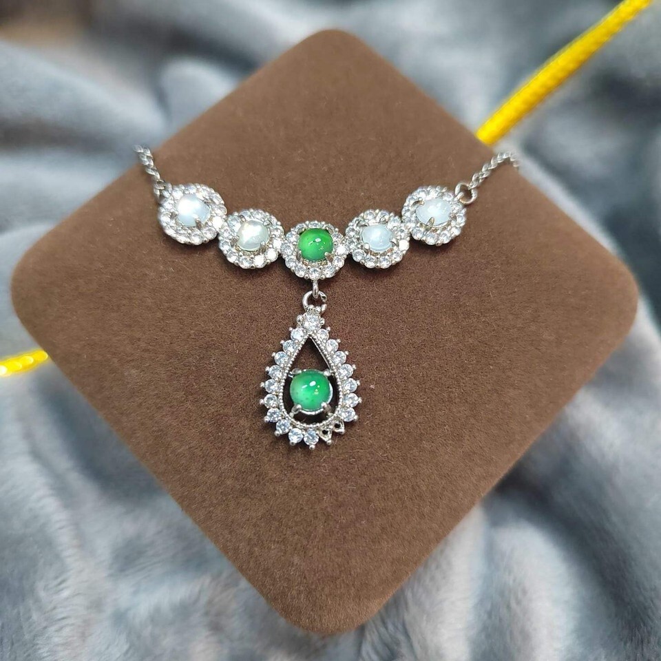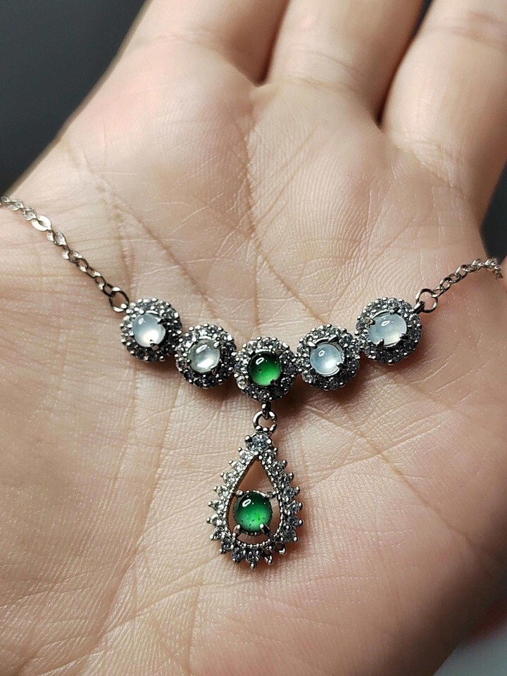Jadeite has long been appreciated in traditional craftsmanship for its beauty and durability. The combination of apple green and icy white jadeite is especially valued for its visual contrast and refined appearance, making this necklace a meaningful addition to any jewelry collection.