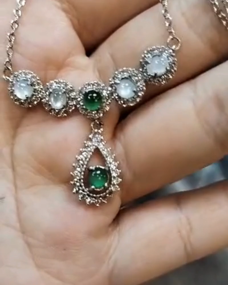 This necklace features certified A-grade Burmese jadeite beads in a striking combination of icy white and apple green hues, set in S925 sterling silver with cubic zirconia accents. Designed in a graceful V-neck silhouette, it blends traditional jadeite craftsmanship with modern elegance. Secured with a lobster clasp, it offers comfort and sophistication for both formal occasions and everyday styling.