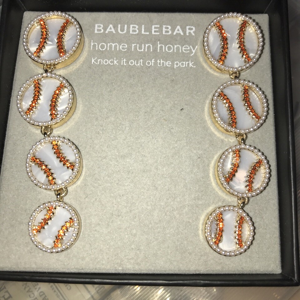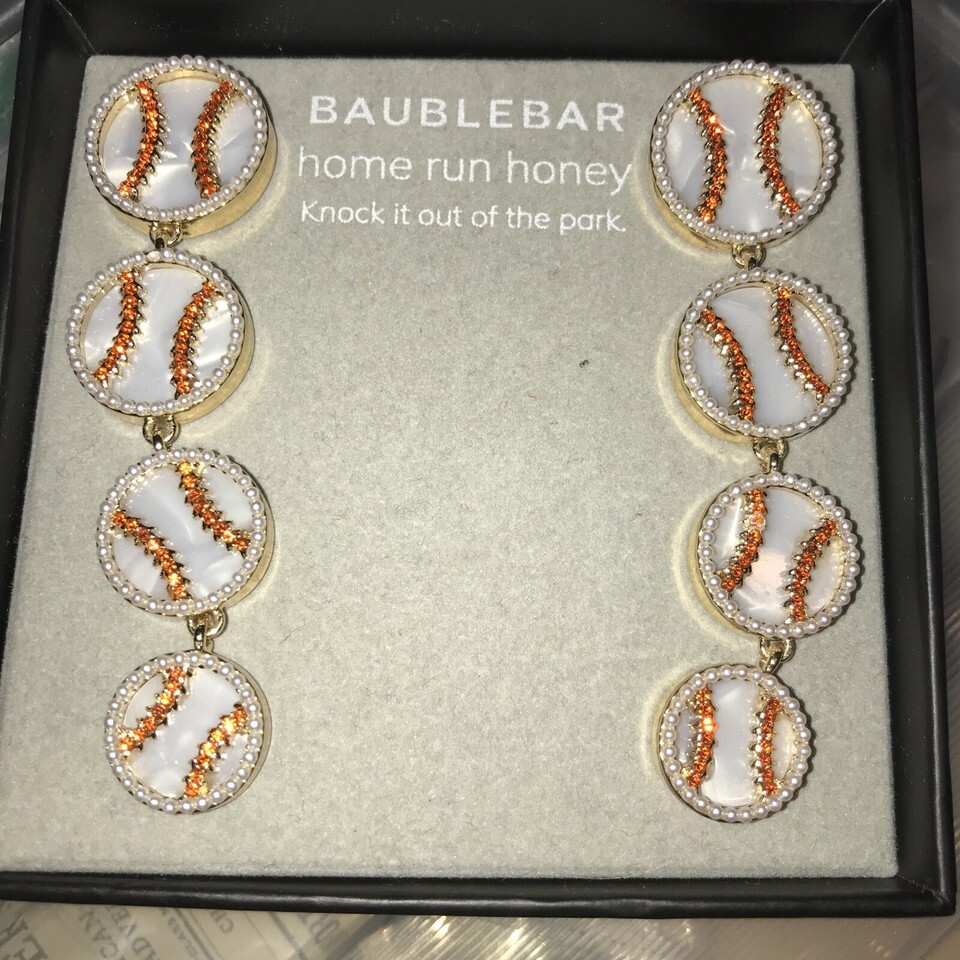 - New BaubleBar Gold Tone Faux Pearl Baseball "Home Run Honey” Dangle Earrings