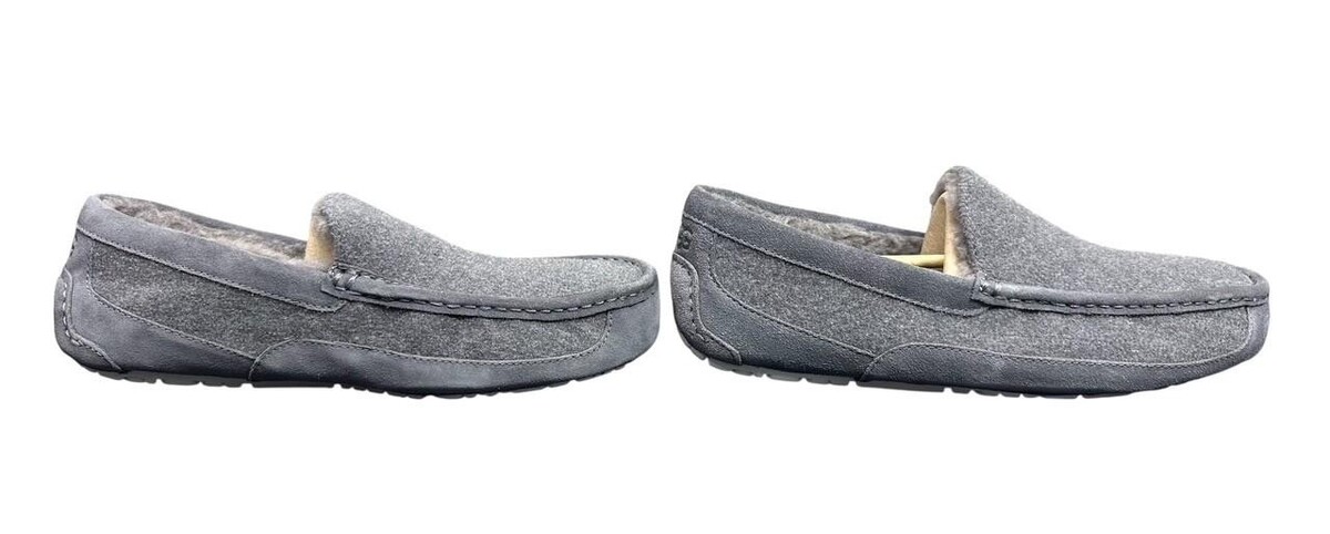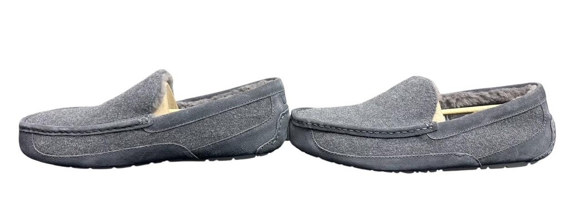 - New In Box UGG Ascot Grey Wool 1103890 Men 12 Moccasin Slippers