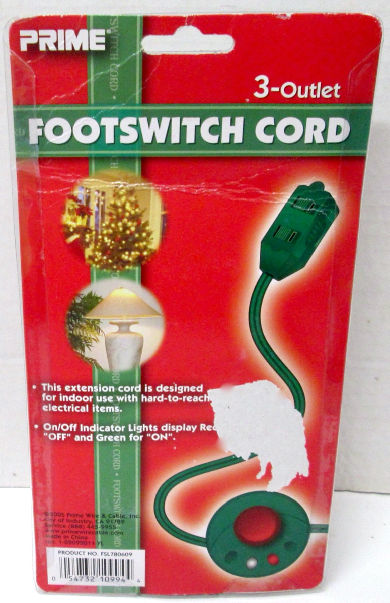 Cord/Hand/Foot Switch/Display Lights/3 Outlet/2 Prong/9' Long |