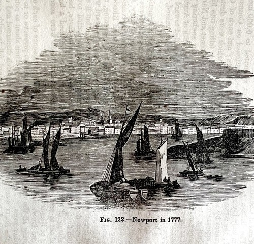 Newport Circa 1777 Ships At Bay 1845 Woodcut Print Victorian Revolution DWY9C