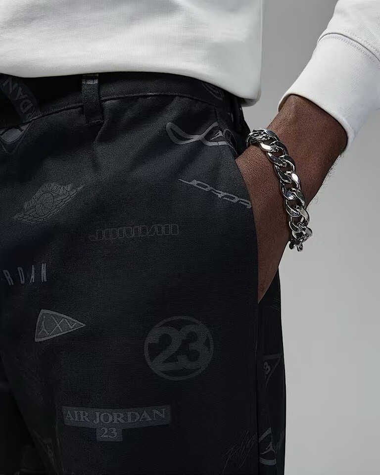 The Nike Jordan Flight Heritage Woven Khaki Pants in Black are versatile activewear pants suitable for various occasions such as casual outings, workwear, and business meetings. Made with a lightweight and comfortable woven fabric, these pants feature a zip closure, pockets for convenience, and a straight leg style. The retro 80s and 90s theme adds a touch of athleisure flair, while the Nike logo and heritage product line elevate the style. Perfect for the fall, winter, and spring seasons, these pants offer easy care with machine washable instructions. Ideal for men looking for a comfortable and stylish pant option.
