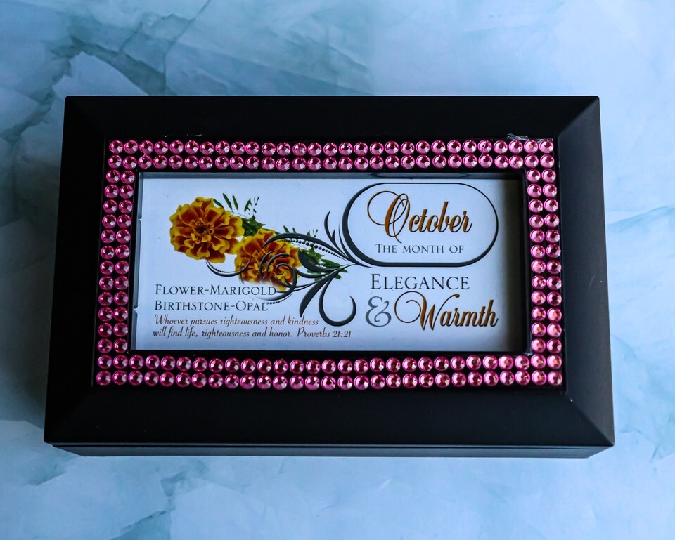 October Month Opal Birthstone Elegance And Warmth Black Musical Trinket Box