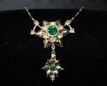 Old MCM Green & Clear Stone Costume Jewelry Necklace Floral Star