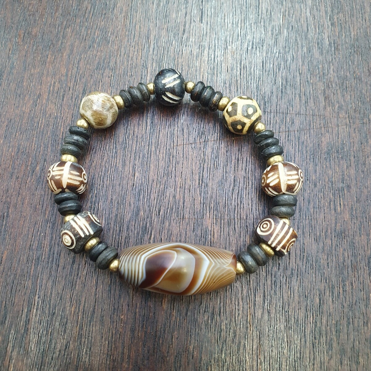 - Old Natural Eye Agate Soleimani Carnelian Beads beaded Bracelet R3