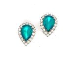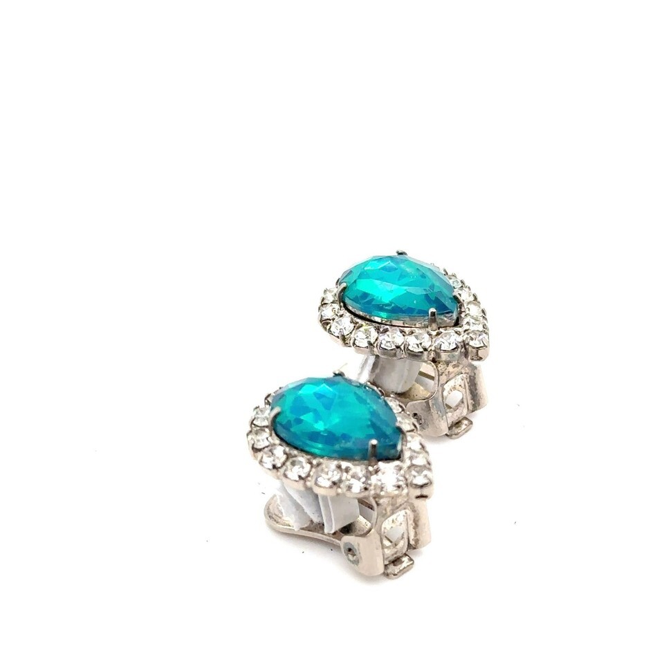 Orecchini con grandi pietre in finto verde blu centrale circondate da pietre limpide sfaccettate con clip sui dorsi.