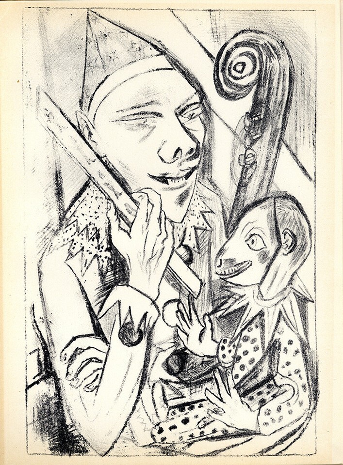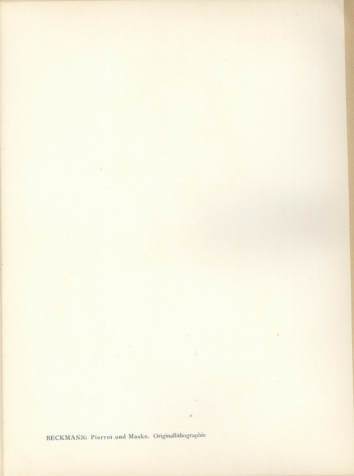 Original Lithograph MAX BECKMANN "Pierrot and Mask" (Pierrot und Maske) from Deutsche Graphiker der Gegenwart (German Printmakers of Our Time) published 1920 ? edition of 600 Deutsche Graphiker der Gegenwart (German printmakers of our time) brings together woodcuts, lithographs, and reproductions by thirty-one artists representing a cross-section of styles from Impressionism to Expressionism, uniting under a single cover works ranging from naturalistic self-portraits to left-wing political caricatures. It features works by artists associated with the Berlin Secession (an exhibiting society comprised primarily of German Impressionists), with Expressionist groups like the Brücke and Der Blaue Reiter, and with the political Novembergruppe, as well as artists like Max Beckmann who were not affliliated with any group. ?The original 1920 woodblock print, edition of 600 ? Not a copy or modern reprint ?
