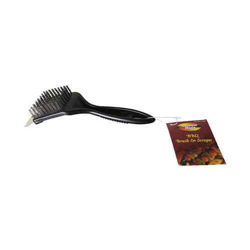 The Outdoor Magic BBQ brush and Scraper will meet your grill cleaning needs with the Stainless Steel Bristles and Steel Scraper helps remove any grilling residue after each use.