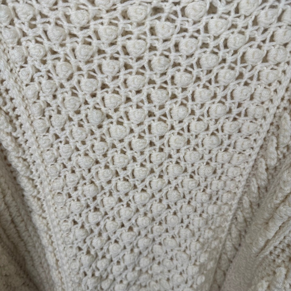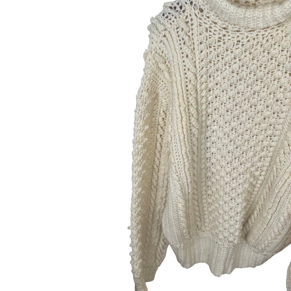 Keywords: Cream sweater, Turtleneck sweater, Chunky knit sweater, Cable knit sweater, Bobble stitch sweater, Textured knit, Cozy sweater, Relaxed fit sweater, Warm sweater, Winter fashion, Fall fashion, Hand knit style, Artisan knit, Womens sweater