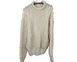 - Oversized Unisex Cream Chunky Hand Knit Turtleneck Sweater Cable, Sz XL