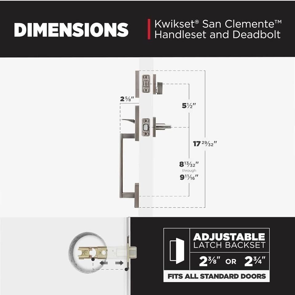 PACK of 2 Kwikset San Clemente Front Door Lock Handle & Deadbolt Set, Entry Door