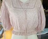 - POL Anthropology Women Pink Lace Embroidered Eyelet Crop Top Balloon Sleeves L