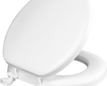 Padded Toilet Seat, Cushioned Soft Vinyl over Wood Core Seat, Secure Hinges, Easy Clean, Round, White