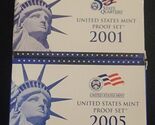 Great Pair of 2001 2005 U.S. Proof Sets in Original Packaging with COA.. -- 21 TOTAL PERFECT PROOF COINS!!! Original Boxes have slight wear. PLEASE SEE PHOTOS BEFORE BIDDING!!!! These would be a Great Gift for any enthusiast or the Perfect Addition to any Collection...