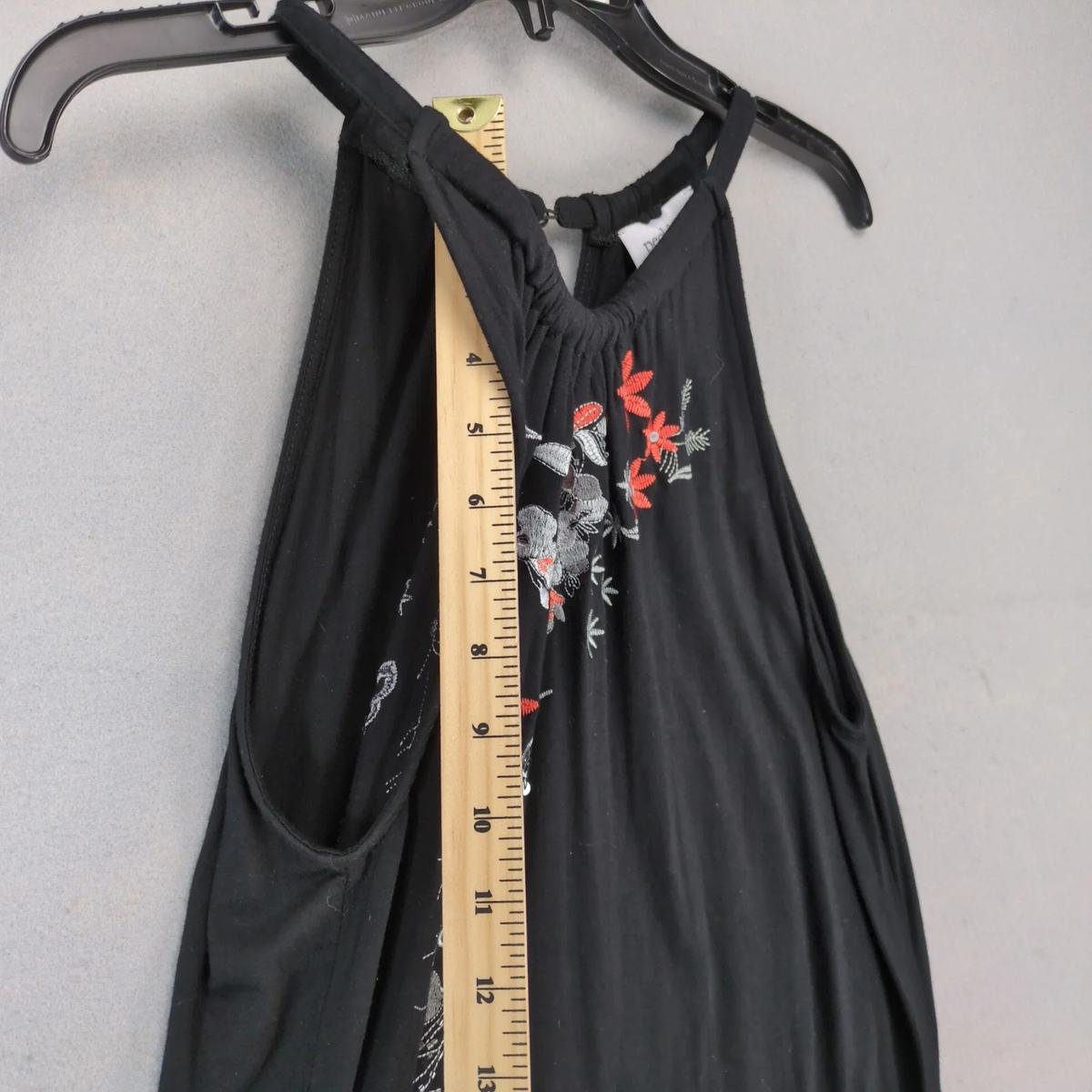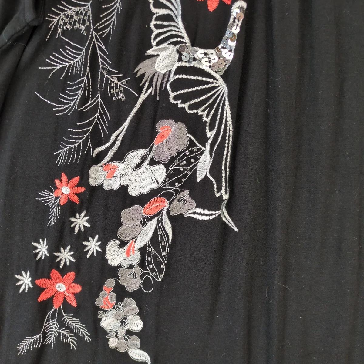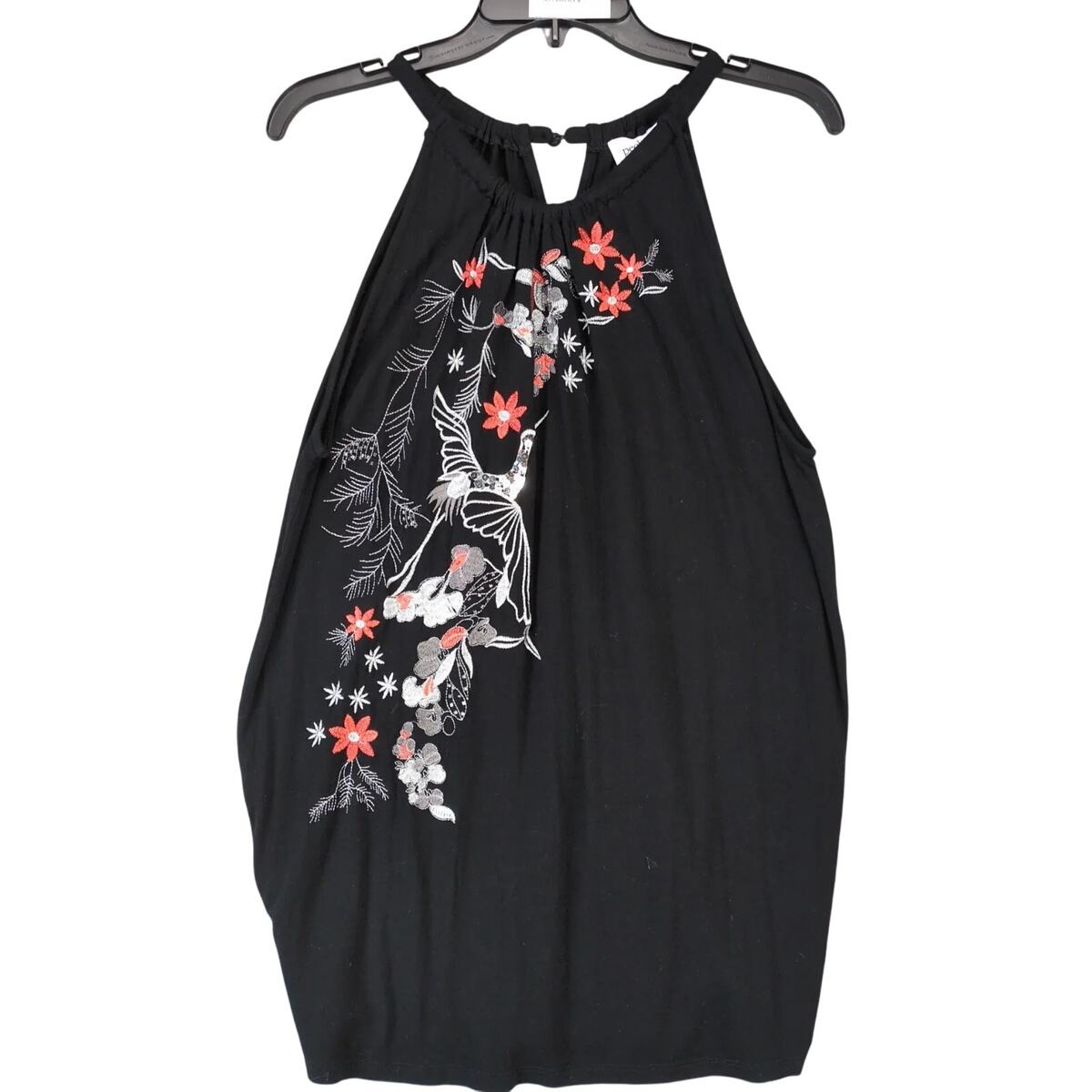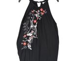 Peck Peck Black Floral Embroidered Sequin Crane Tank Top Women's L Racerback