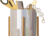 ?Ceramic pen cup+Solid Metal cross? Our pencil holder is crafted from durable ceramic,Combined with a metal cross, The bottom will not touch the desktop, and the stability is good.